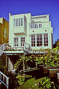 Project Goals: Re-design street facade, porch, and stairway; integrate expanded top floor bedroom and garden stair in rear wall design; renovate top floor deck